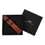 An additional strap brings a fresh look to your timepiece. Made from genuine materials, each strap is crafted with care. View the video instructions below for changing out your existing leather strap. For better assistance changing a metal band to leather, visit any professional jeweler.